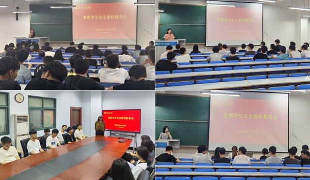 为加强暑期留校学生的安全教育管理,增强留校学生的安全意识和自我保护能力,近期,计算机科学与技术学院各年级辅导员分批对全体留校学生召开安全教育主题班会。