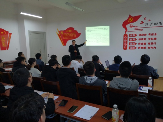 为落实学校“不忘初心、牢记使命”主题教育安排,深入推进学生思想政治教育工作,10月24日下午,能源与动力工程学院党总支副书记李俊丰在学院党员活动室为本科生党支部上了一堂题为《互联网视域下高校学生思想政治教育工作的思考》的党课。