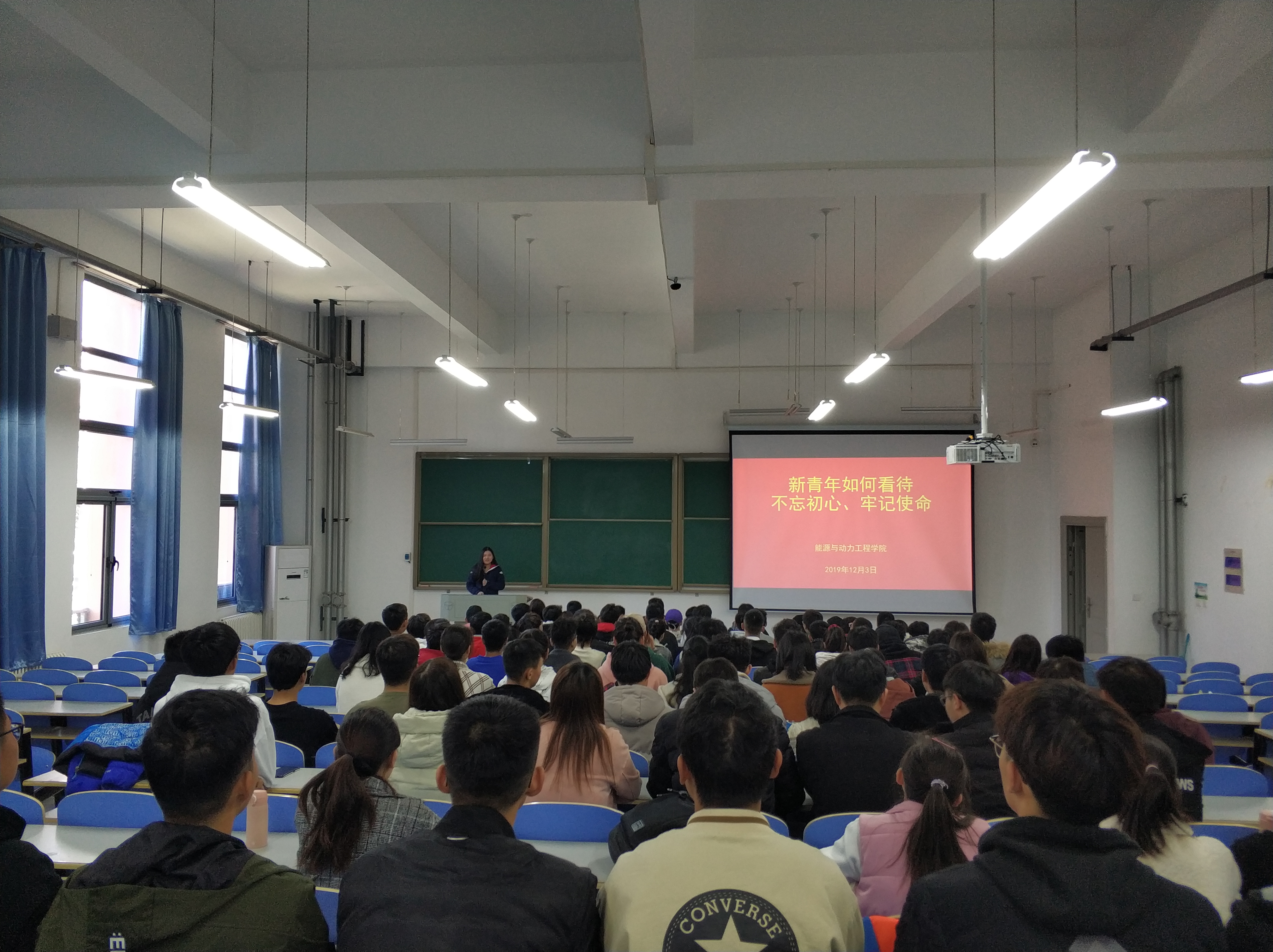 为深入学习习近平新时代中国特色社会主义思想,深入贯彻党的十九大精神,提升青年学生的理论修养和思想水平。12月3日12点,能源与动力工程学院于工程楼109开展了“新青年如何看待不忘初心牢记使命”主题团课,学生会主席团及学院全体学生干部参加了此次团课。