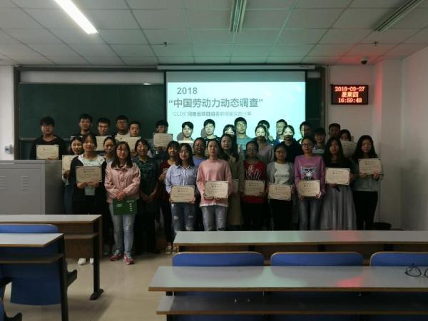 各位同学领取劳务薪酬同时也获得中山大学的“CLDS”调研的证书。最后,大家一起手持证书合影留念,这也标志着2018年河南省“中国劳动力动态调查”终于圆满结束。