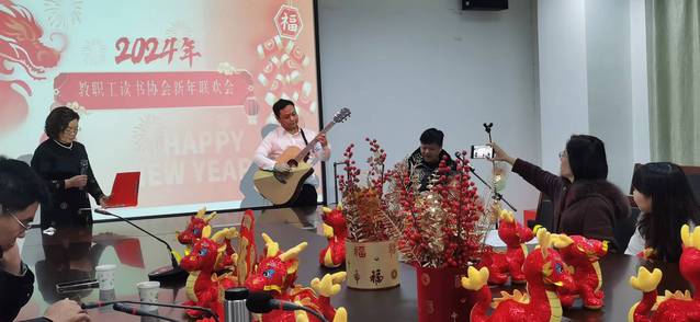 此次阅读分享会暨新年联欢会大家进行了阅读心得交流、个人才艺展示,充分展示了教职工读书协会的风采。大家表示虽然工作忙碌、家事琐碎,但爱上读书使心灵变得更加辽阔和宽广,坚韧而顽强;困难时刻,阅读能给人以力量、给人以希望,一个热爱读书的人,心中不但有日常的春夏秋冬,也有“诗和远方”。2024年,教职工读书协会与全体会员一起以“书”为舟,奔向新的征程!