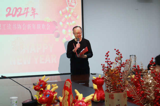 1月16日,教职工读书协会在科学校区图书馆举办“诗龙舞 庆新春”阅读分享暨新年联欢会,校工会副主席吴占超、会长杜红亮、副会长吴学红、吴起立参加阅读分享会。