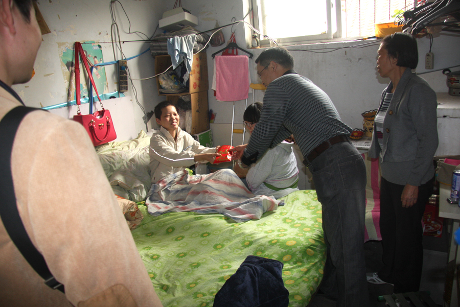 ,数学系教师代表探望郭毅贤,转交了爱心捐款,转达广大师生的关心,祝郭毅贤同学用积极的心态,早日战胜病魔,并向其家属致以问候。