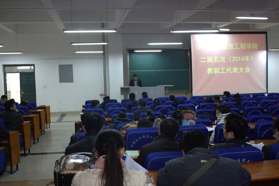 2015年1月15日下午2:00,计算机与通信工程学院二届五次教职工代表大会在计算机学院楼217教室召开,学院全体教职工参加了本次大会。会议由党总支贾菁菁书记主持。