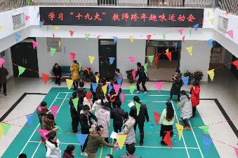 12月28日下午16:00,,计算机与通信工程学院(电子信息工程学院)于计算机楼内大厅举办学习“十九大”教师跨年趣味运动会,我院全体教职工老师参与了此次趣味运动会。