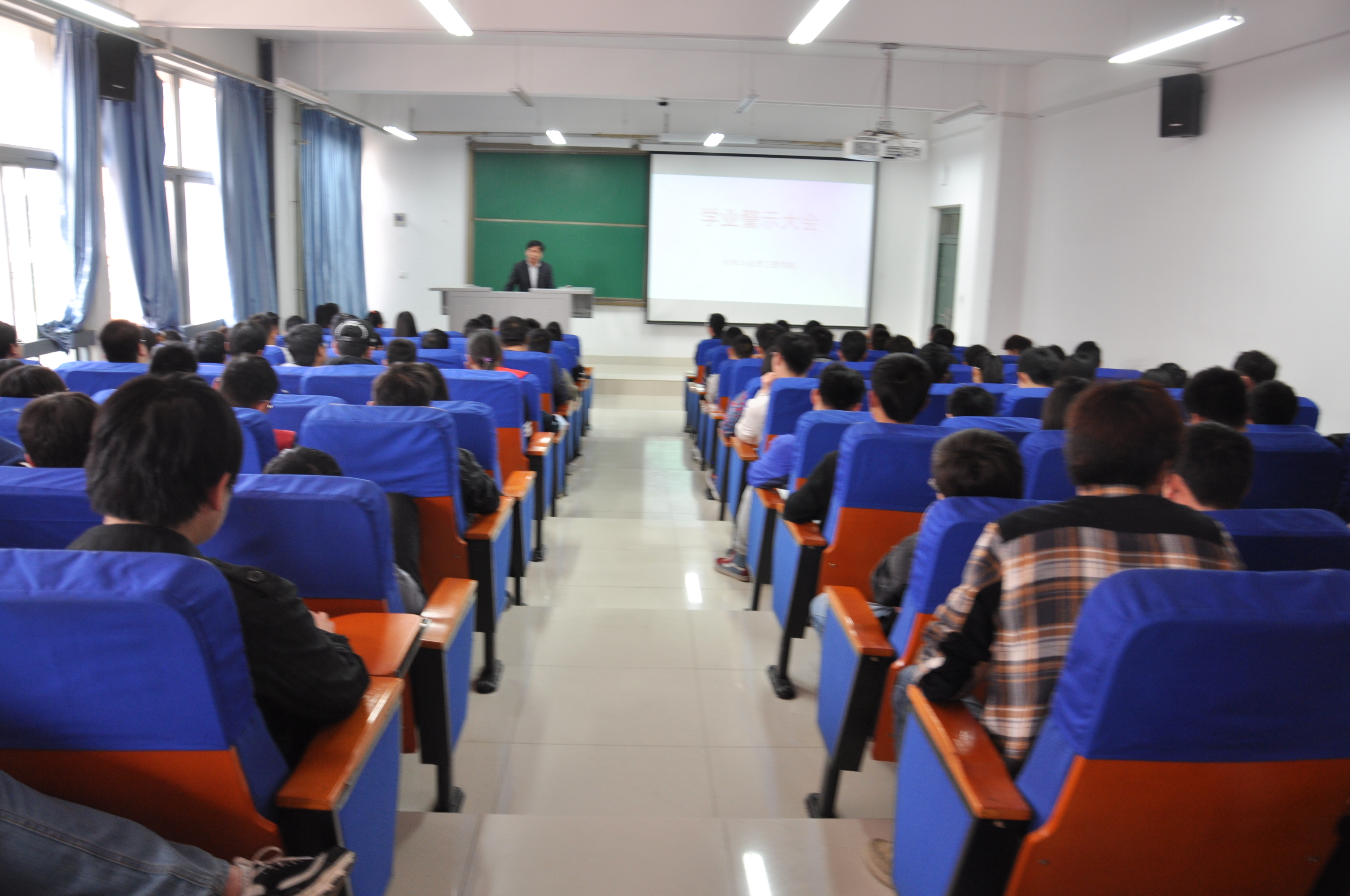 首先、尹志刚副院长讲解了我校本科生培养过程中学年制与学分制的形成情况与目前学业警示、留级和退学的有关政策;真诚地讲述了往届个别毕业生的曲折人生道路,让学生们牢记前车之鉴。
