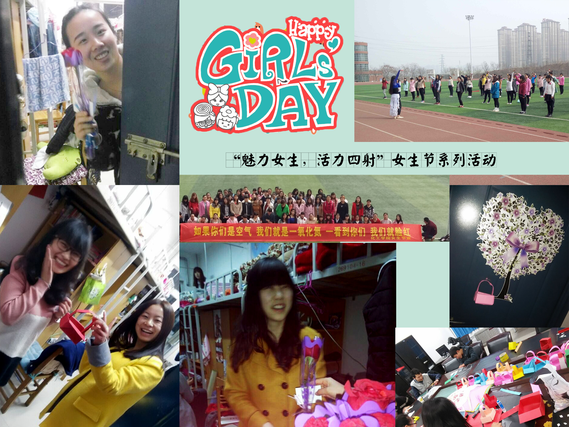 幸福与浪漫共存,感动与感恩常在。女生节不仅是女生的节日,更提供了一个同学们拉近彼此距离的机会,也让学生会在这个特别的日子里向广大女生传递自尊自信自立自强、健康美丽成长的理念,营造关爱女生、呵护女生的校园氛围。