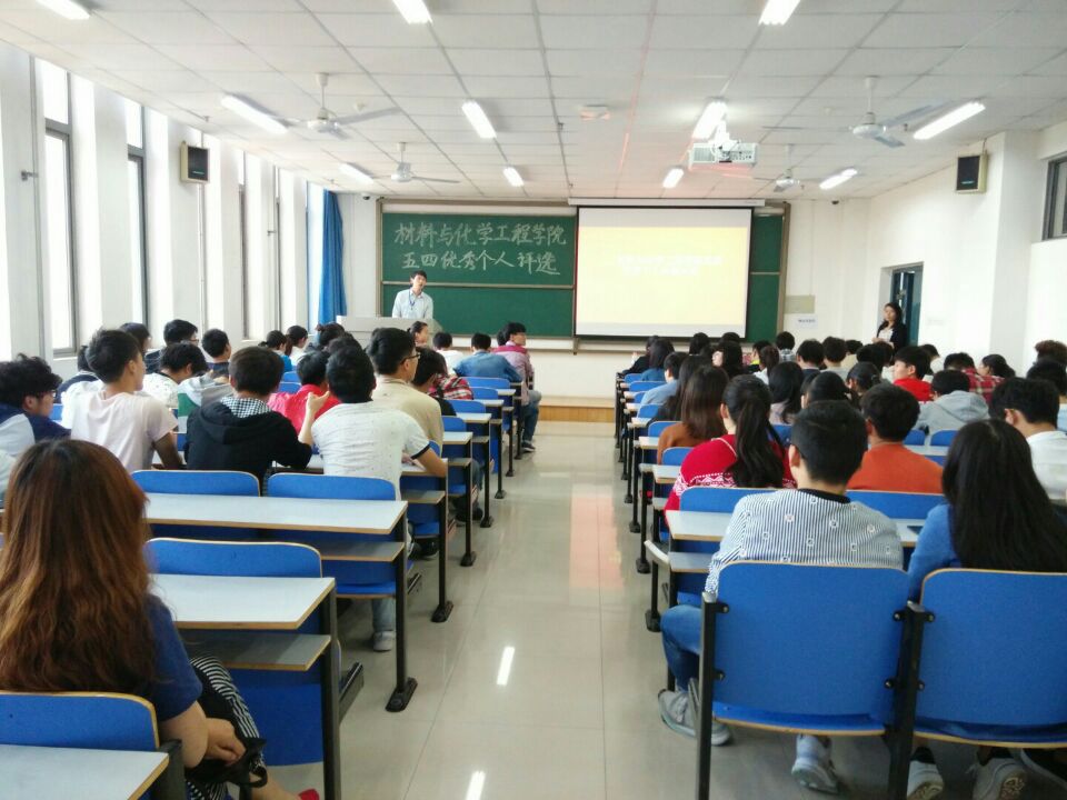 为展示和表彰2015至2016 学年中涌现出的政治素质过硬、模范作用突出、骨干作用明显的先进集体和优秀个人,材料与化学工程学院分团委于4月19日下午4点30在一教楼309和311举办学院五四推优评先答辩活动。此次答辩由分团委副部长宋宇和分团委干事梁俊杰主持,学生会主席团和各部部长出席了本次活动,评委由大一到大三各个班级团支书担任,各班班委悉数到场。