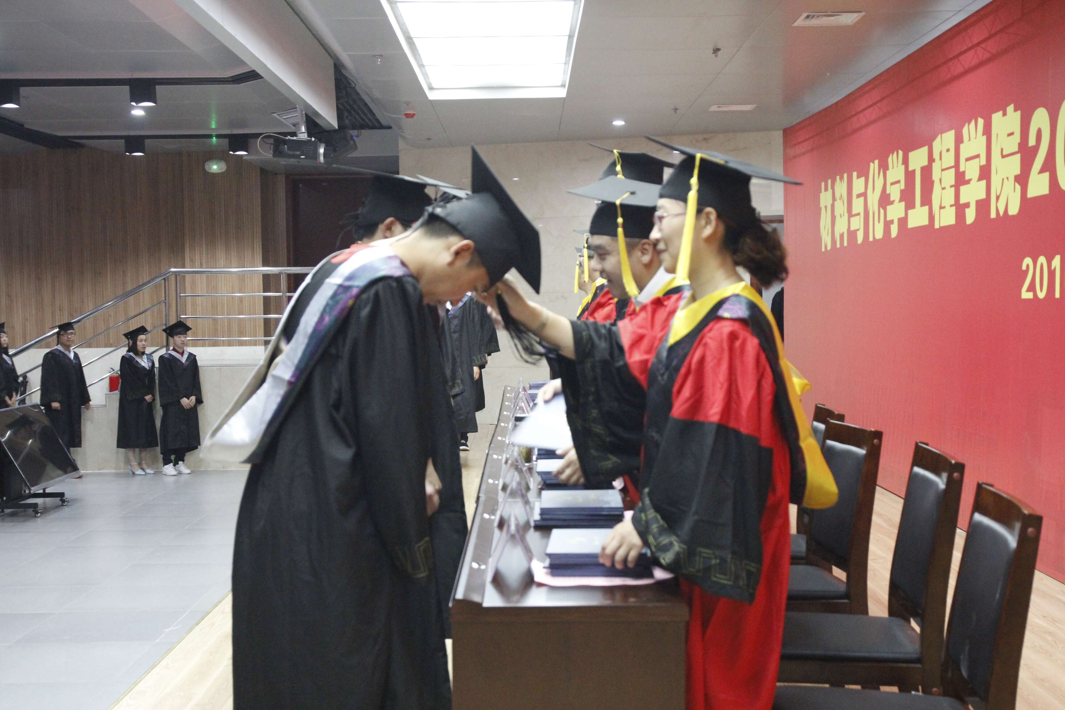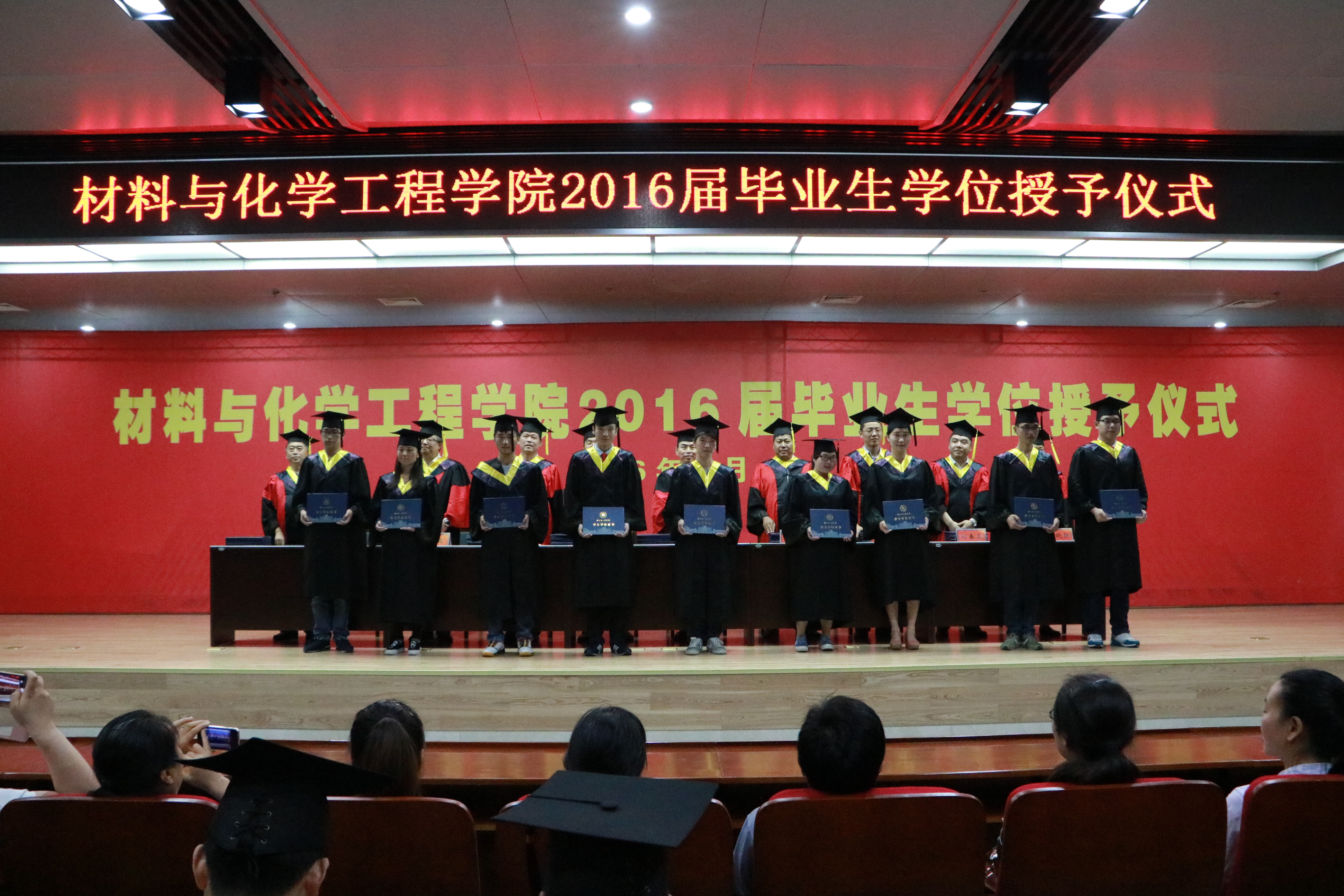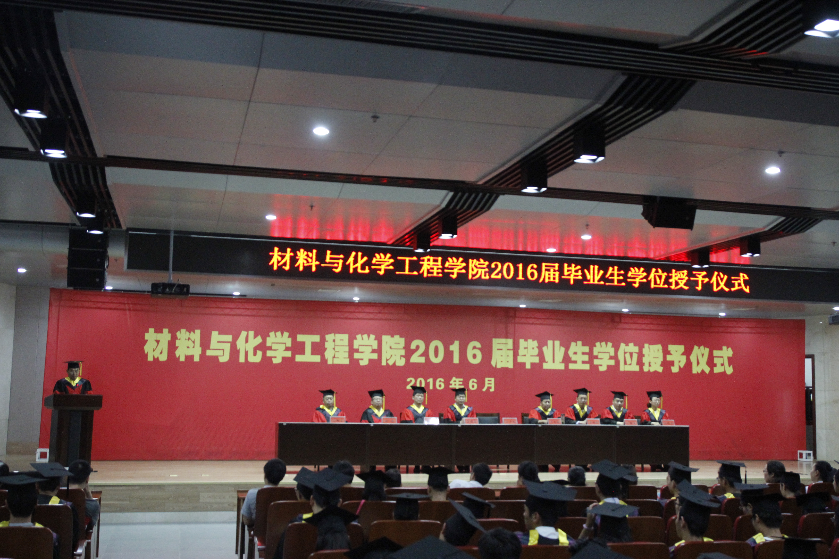 6月6日下午,材料与化学工程学院在科学校区逸夫图书馆报告厅隆重举行2016届毕业生学士学位授予仪式。学院党政领导、导师代表出席仪式并在主席台就座。2016届全体本科毕业生、部分教师代表参加仪式。仪式由党总支副书记宋德涛主持。