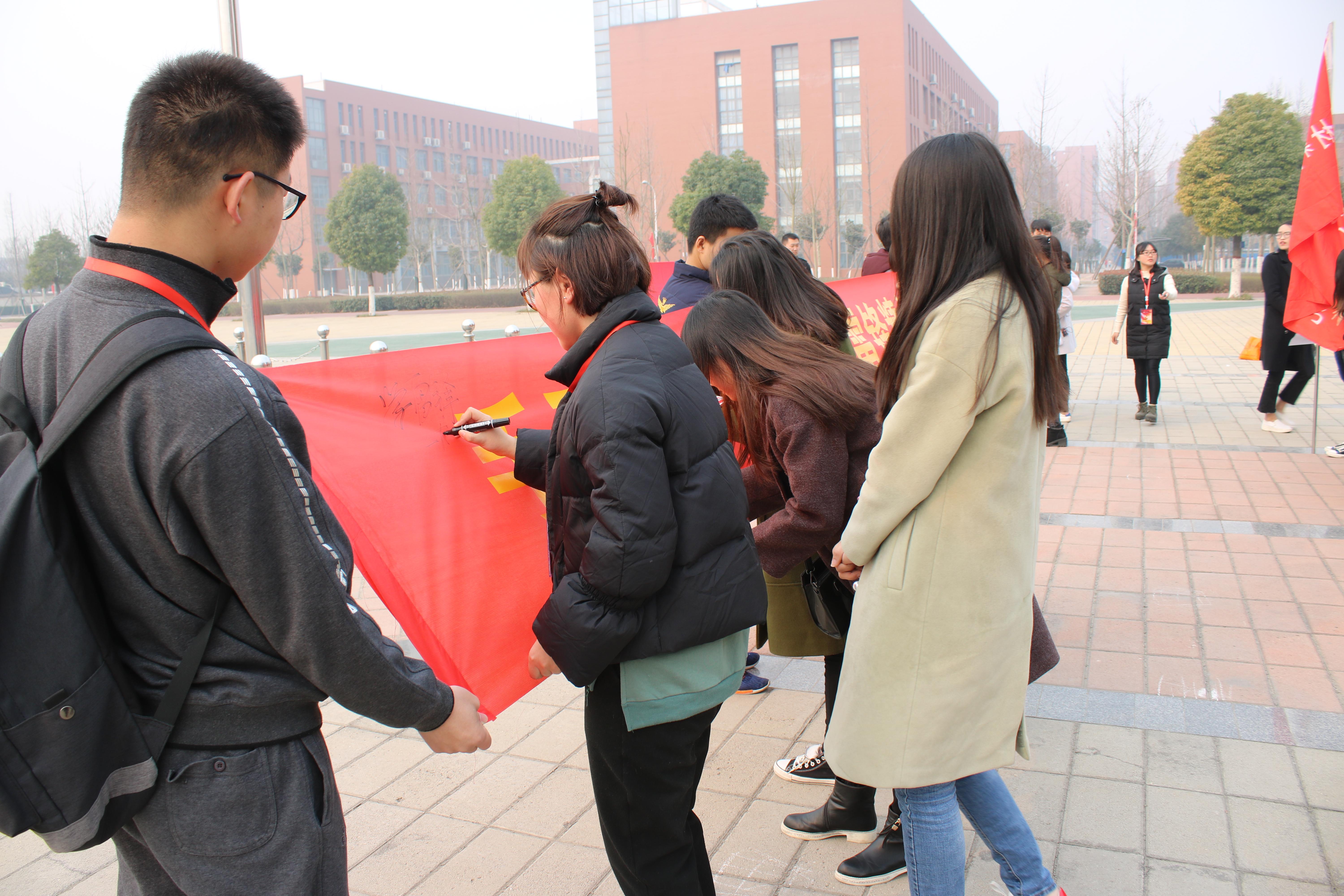 活动从党员在国旗下宣誓开始,激情昂扬的入党誓词使大家时刻牢记为人民服务的坚定信念,接着党员们纷纷在条幅上提笔签名,表达自己志愿活动的决心与期待,最后大家列队整齐向郑州轻工业学院周边的须水河边出发,党员们头戴红帽、身着标有“为人民服务”的服装,手持垃圾袋为人民服务的志愿行动成为须水河边一道靓丽的风景线,路人们纷纷为志愿者们拍照并点赞。