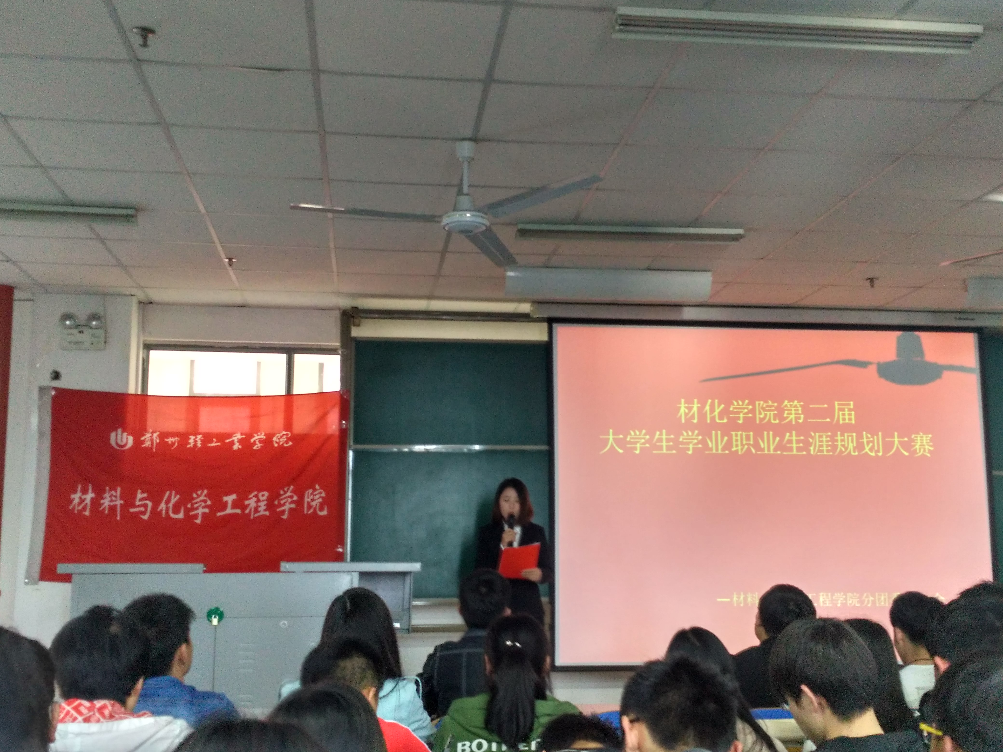 为帮助学院学生全面了解当代大学生学业职业生涯规划,进而确定学业发展目标,制定学业发展计划。材料与化学工程学院于4月17日在二教楼916室举办第二届大学生学业职业生涯规划大赛活动。本次活动邀请了分团委副书记梁俊杰、主席刘宇鹏、社践部部长张恩波、大学生就业与职业发展协会书记陈辉、副会长张克作为比赛嘉宾,学生会成员及2016级同学参加此次活动。