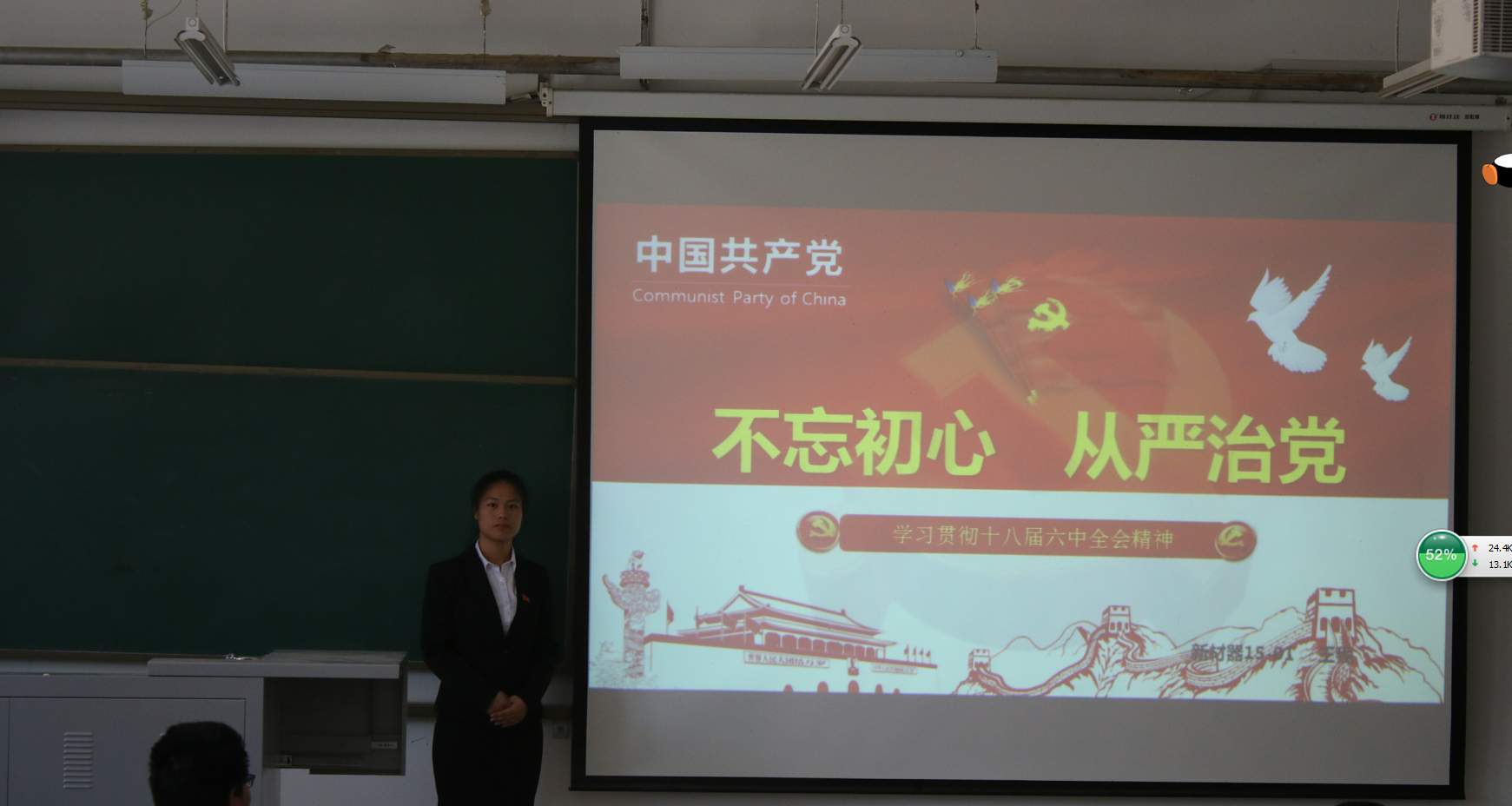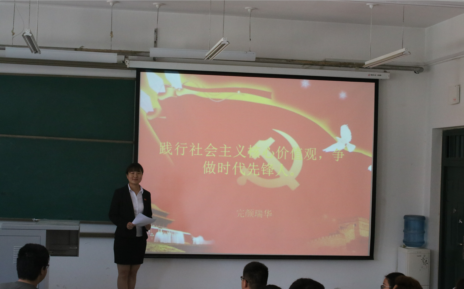 在演讲的过程中,党员们身着正装,佩带党徽,意气风发,精气神十足!党员们都提前认真积极地准备了自己要讲的主题PPT课件,课件内容分门别类,主要有“社会主义核心价值观的发展与践行”、“中国梦”、“习近平总书记系列重要讲话精神”、“十八届六中全会”、“党章总纲”、“全面从严治党”等几个主题。每位党员的讲解条理清晰,引人入胜,吸引着大家专心地学习。同时,我院30名自愿参加本次活动的同学也收获满满,并表示自己一定会积极向党组织靠拢,向党员们学习,学习党课,提升自身素质。