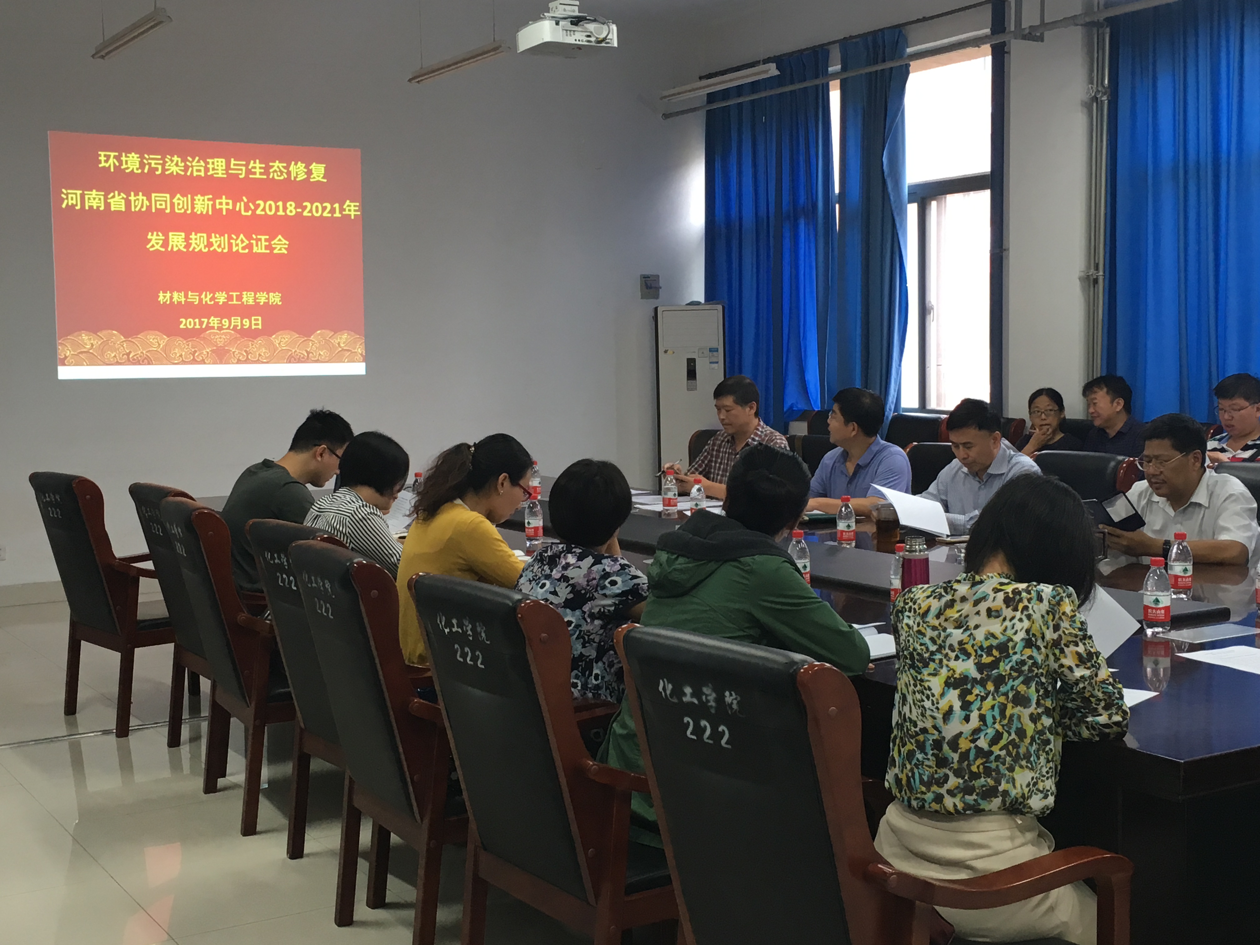 9月9日下午,材料与化学工程学院在化工楼222会议室召开了环境污染治理与生态修复河南省协同创新中心2018-2021年发展规划论证会。方少明副校长、二级学院领导班子、系部主任和中心骨干人员参加了会议。学院党总支康国磊书记主持会议。