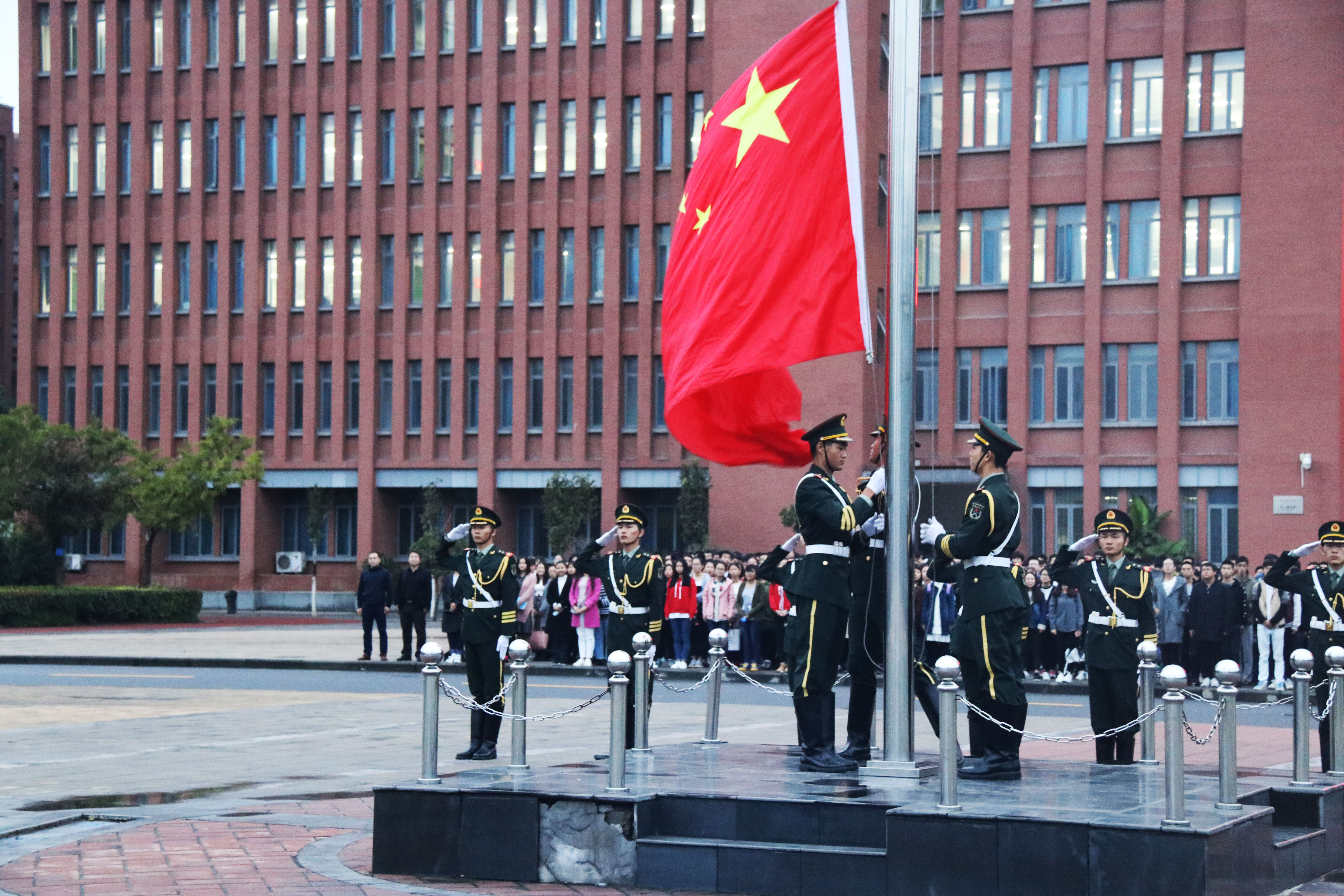 六点三十分,天色微亮,细雨飘飘秋意浓,材化学院1000多名学子不畏寒冷,昂首站立在广场上,等待着那激动人心的时刻到来。在大家热切期待中,校国旗护卫队队员迈着铿锵的步伐,护送五星红旗入场。鲜艳的五星红旗伴随着《义勇军进行曲》冉冉升起,在场的师生行注目礼,每个人脸上彰显着庄重而自豪的神情!