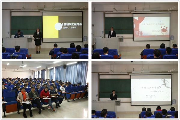 为进一步培养“勤奋、向上、求知、笃行”的学风,展现我院学生积极向上的精神面貌和全面发展的综合素质,加强我院学生思想政治教育,发挥先进典型的示范引领作用,2018年10月29日中午,材料与化学工程学院于化工楼218举行十佳“轻院之星”、十佳“自强之星”评选大会。学院全体辅导员老师、各班级学生代表参加了本次大会。