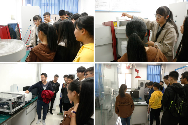 同学们按计划于原定时间集合完毕,在负责人的带领前往相关实验室进行参观,实验室老师对大家的到来表示欢迎。参观过程中,同学们兴致勃勃的聆听着专业老师对于仪器设备的用途、使用方法以及前沿科技的讲解,尽管讲解过程中涉及很多专业名词,老师还是尽量用通俗易懂的语言向新生释疑解惑。对实验仪器兴趣浓厚的同学做起笔记,认真记录一些重要的操作步骤,对实验仪器的操作过程或工作原理有疑问的同学,积极提出问题并阐述自己的想法,老师根据多年工作经验为同学们答疑解惑,进行探讨交流。活动最后,老师对参观情况进行了总结并鼓励同学们多参与到实验中,在实践中学习并提高自己,结合理论知识,把所学的知识运用到实际中去。