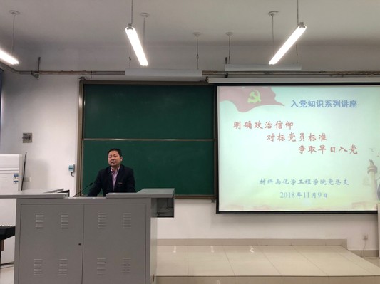 为普及入党知识,帮助广大新生同学明确政治信仰,11月9日下午,材料与化学工程学院党总支在科学校区218教室举办新生入党知识专题讲座。本次讲座面向2018级新生同学,由党总支副书记宋德涛老师主讲。