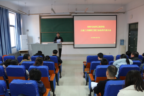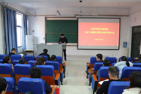2019年1月17日下午,材料与化学工程学院在科学校区化工楼218室召开三届二次教职工暨工会会员代表大会,学院教代会代表参加了会议。会议由学院党总支书记康国磊主持。