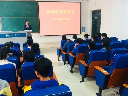 为进一步做好学生资助政策宣传工作,让学生知晓并了解家庭经济困难学生资助政策,保障贷款毕业生权益,根据学院学生资助工作计划,材料与化学工程学院于4月2日在化工楼218教室开展“两节课” 资助政策宣讲活动。党总支副书记宋德涛老师、负责资助工作的李瑞瑞老师、毕业班辅导员以及2019届贷款毕业生参加了此次活动。
