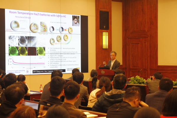 报告中,窦世学院士以自己的工作经历和学生的培养感悟为切入点,与大家分享了他和刘华坤院士近期在新能源材料和超导材料方面的最新研究成果。报告多层次、多视角地阐述了功能材料的架构设计和维度控制,表界面、空位-缺陷和价带调控,杂化处理以及器件开发与商品化应用。报告会现场,窦院士同与会师生进行了互动交流,学术讨论氛围浓郁,师生深受启发。