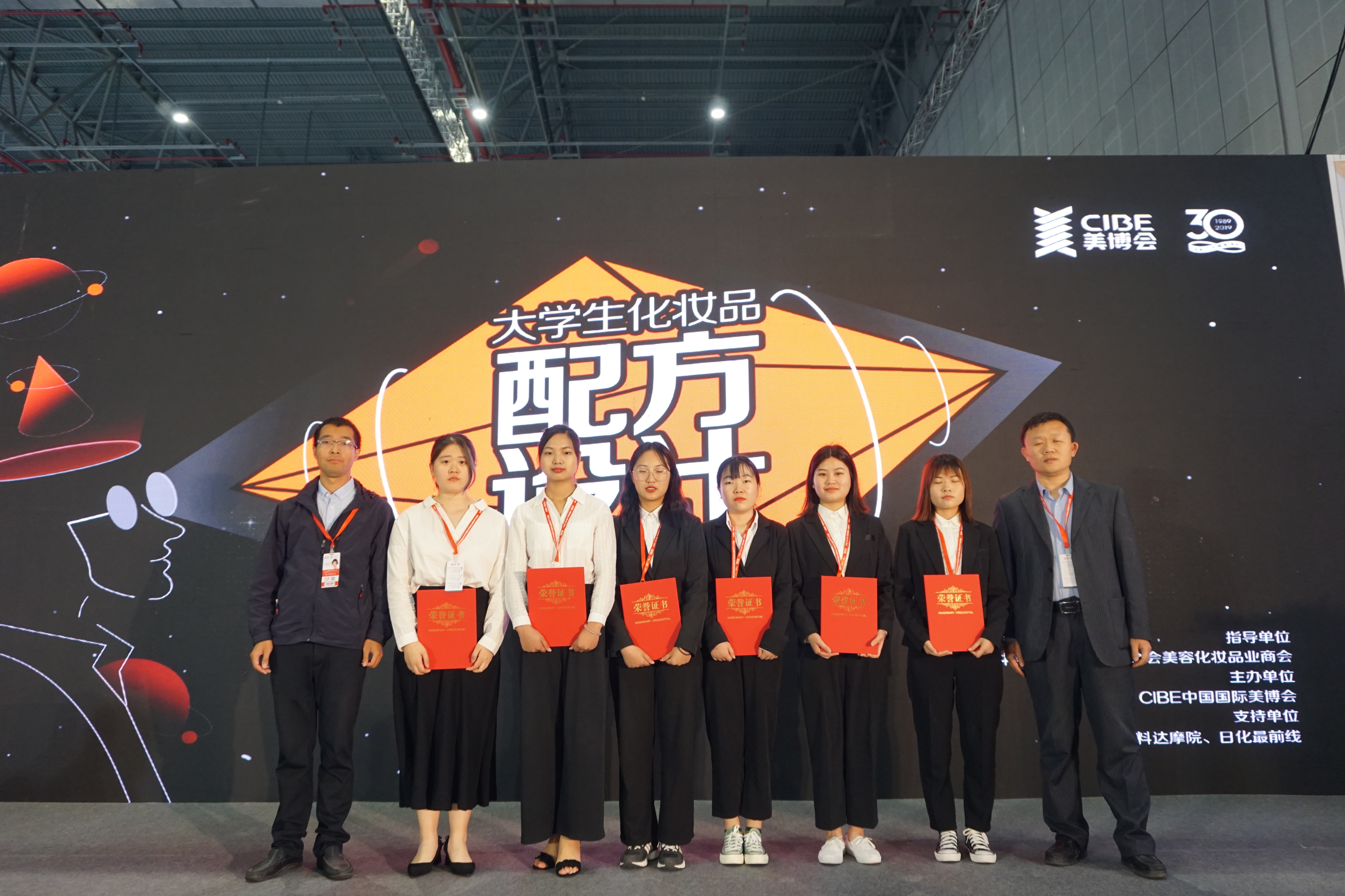 5月6日,中国国际美博会在上海虹桥国家会展中心盛大举办“首届全国大学生化妆品配方设计创新大赛”决赛。材料与化学工程学院精细化工专业三支学生队伍在钱恒玉、樊凯奇老师的指导下,均荣获入围奖。