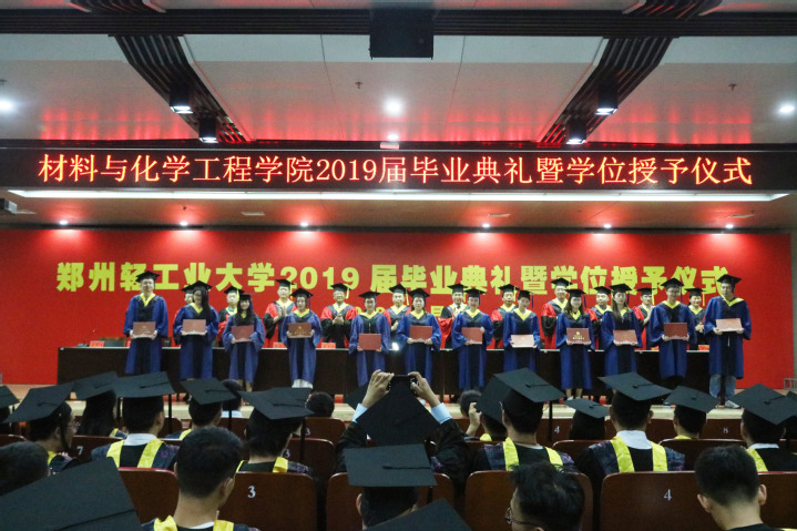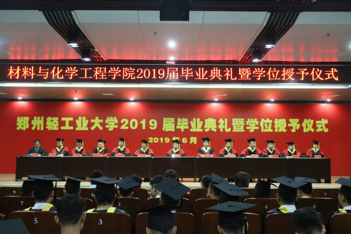 6月20日,材料与化学工程学院在科学校区逸夫图书馆学术报告厅举行2019届毕业典礼暨学位授予仪式。副校长方少明教授、学院领导班子、专业系主任、导师代表及2019届全体毕业生出席典礼。典礼由党总支副书记宋德涛主持。