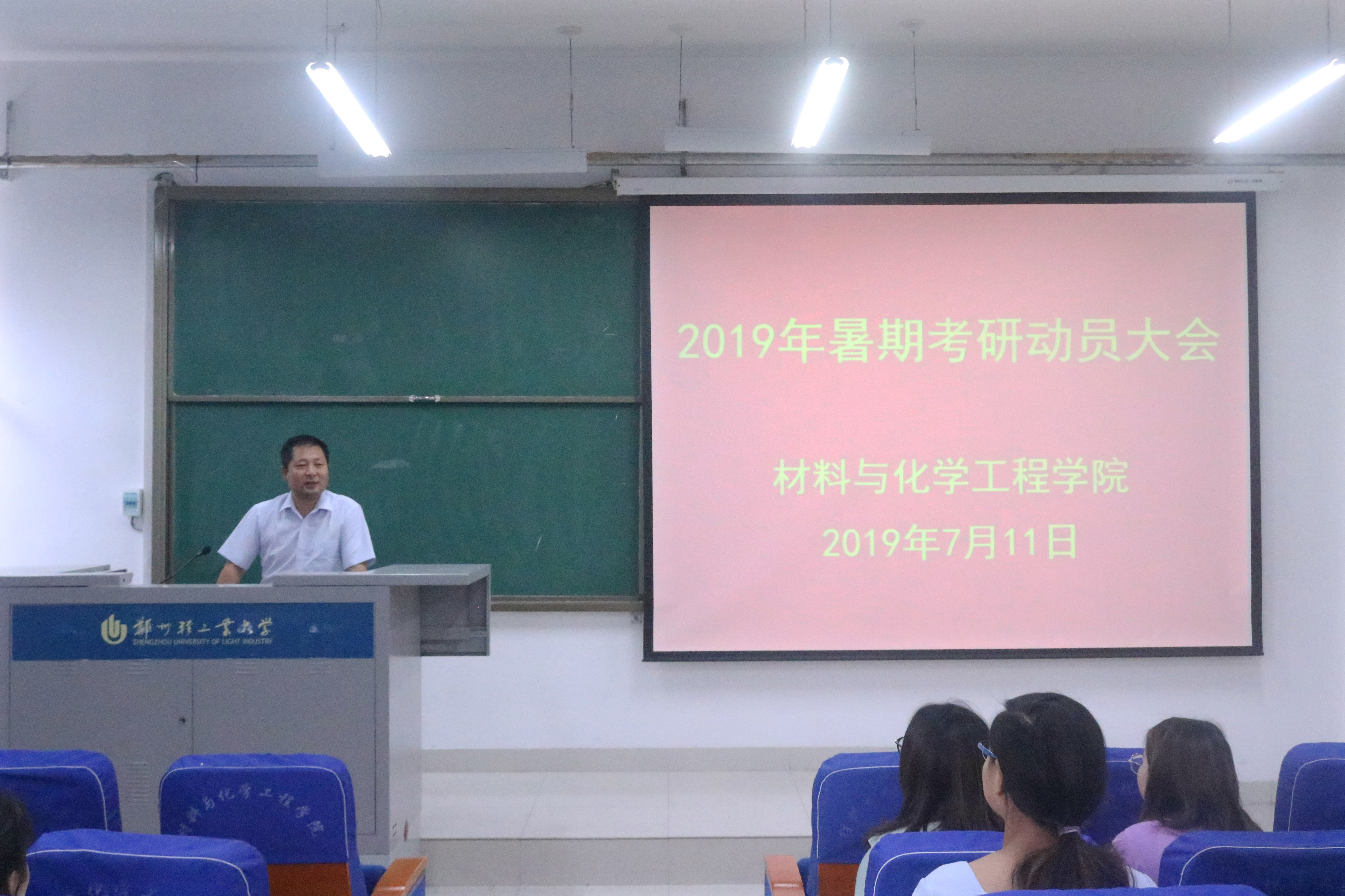 为帮助同学们树立正确的考研目标,增强同学们的考研信心,7月11日下午15:00,材料与化学工程学院在化工楼218室召开2019年暑期考研动员会,2016级留校备考学生参加大会。大会由学院党总支副书记宋德涛老师主讲。