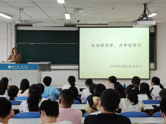 为使2019级新生更好了解大学生活、更快地适应融入新集体,9月8号下午三点,材料与化学工程学院化学系在科学校区三教楼202室召开“欢迎新同学,为梦想努力”主题班会,新生辅导员张华林老师,新生班主任孙淑敏老师、黄改玲老师,2017级学生代表及全体19级化学系新生参加了此次班会。