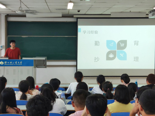 班会伊始,张华林老师首先对同学们的大学学习目标提出了明确要求,他强调大学对于青年是一个非常重要的学习阶段,相比高中,大学学习依然要以学习知识为主要目标,同时还需要极大的自律意识和自学能力,不要以不挂科为主要目标,要有更高的目标来要求自己。班主任孙老师就大学安全教育方面对同学们进行叮嘱,结合自身大学时期遇到的校内安全及校外安全问题,帮助同学们提高认识,加强防范。接着,我院17级学生代表麻怡、卢晓璇分别就“大学生如何规划学习”和“大学生是否应该参加社团”两个主题同新生们分享了他们的经验与见解,对同学们的积极提问和疑惑逐一进行解答,现场气氛热烈。