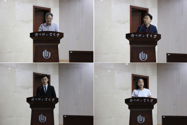 典礼在庄严的国歌声中拉开帷幕,周立明院长首先发表讲话,他代表学院全体师生向2019级新生的到来表示热烈的欢迎。他希望同学们作为18新利直播 首届新生,要坚守初心,锤炼坚韧品格,成为无愧于时代、无愧于国家、无愧于学校的“立大事者”。教师代表靳清贤老师以自身的成长经历出发,激励新生在前进的道路上策马扬鞭,努力耕耘,不断创新,把握住大时代赋予轻大人的机遇,带着青春的梦想,实现更加华丽的转身。随后,2019级研究生新生代表白亚榕、2017级本科在校生代表李明睿和2019级本科生新生代表陈绮欣同学分别发言,他们与大家交流了自己的经验与感想,表达了他们牢记使命,拼搏进取的决心,并为2019级新同学送去美好祝福,希望大家借青春之势,扬梦想之帆,不忘初心,砥砺前行。