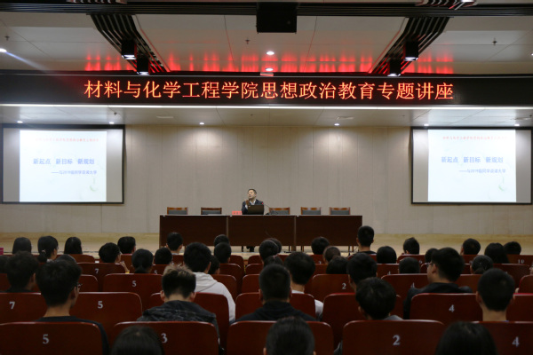 为了不断的提高学生的思想政治素质,培养学生树立正确的人生观和价值观,提高学生的安全意识,9月16日上午,材料与化学工程学院于图书馆报告厅举办思想政治教育专题讲座。材料与化学工程学院党总支副书记宋德涛老师主讲,2019级全体同学参加了此次讲座。