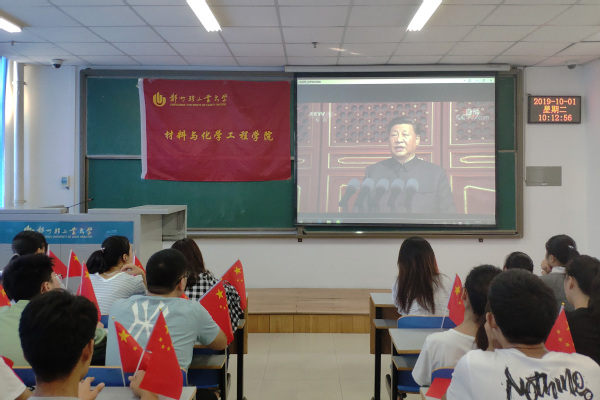 2019年10月1日上午,北京天安门广场隆重举行庆祝中华人民共和国成立70周年大会阅兵式和群众游行,期间,材料与化学工程学院在科学校区二教楼808室组织师生全程观看现场直播。