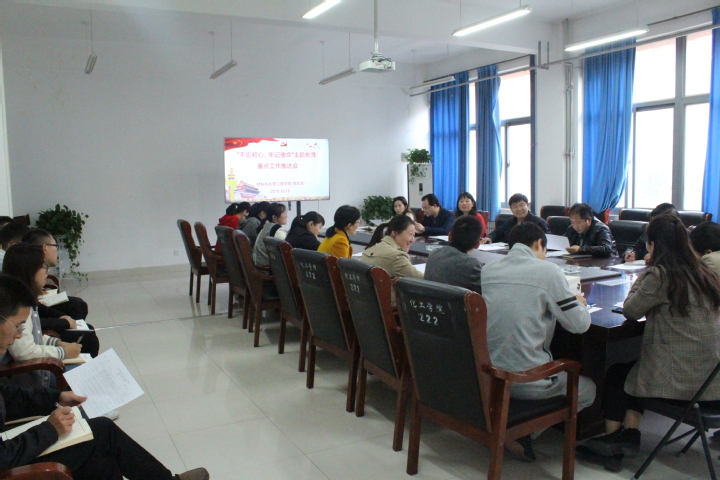 根据《中共18新利直播 委员会“不忘初心、牢记使命”主题教育实施方案》要求,按照材料与化学工程学院“不忘初心、牢记使命”主题教育工作安排,10月15日,材料与化学工程学院在化工楼222会议室开展“不忘初心、牢记使命”主题教育重点工作推进会,党总支书记康国磊、副书记宋德涛、教工支部、学生支部支部委员参加本次会议。