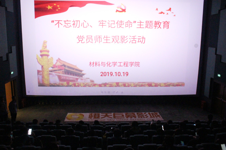 为进一步推进“不忘初心、牢记使命”主题教育,弘扬爱国主义精神,10月19日,材料与化学工程学院党总支组织全体师生党员集体观看新中国成立70周年献礼片《我和我的祖国》。