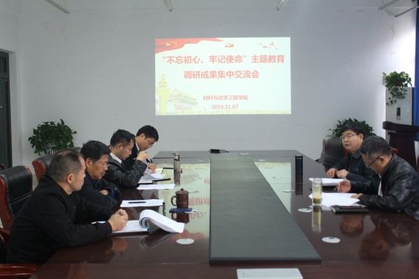 为进一步推进“不忘初心、牢记使命”主题教育重点工作,11月7日,材料与化学工程学院在化工楼222室召开了“不忘初心、牢记使命”主题教育调研成果集中交流会,学院领导班子成员参加了会议,会议由党总支书记康国磊主持。