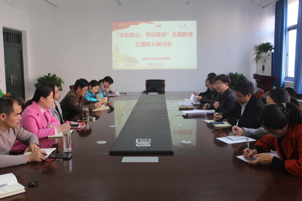 11月14日下午,材料与化学工程学院“不忘初心、牢记使命”主题教育立德树人研讨会在学院222会议室召开,学院领导班子成员、各系部教师代表、各科室负责人参加了会议,会议由党总支书记康国磊主持。