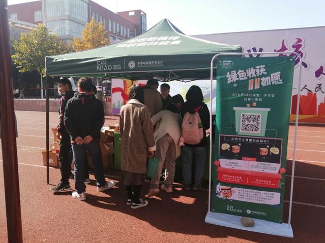菜鸟“回箱计划”环保活动倡导绿色回收理念,过去只能作为垃圾回收的快递箱被重新利用,既能够节约消费者的寄件成本,更能够减少对快递纸箱的浪费。捐赠纸箱的同学通过扫描二维码获取“蚂蚁森林”能量,每捐赠10个纸箱,菜鸟驿站绿色回收计划就会联合公益组织以其个人名义种一棵树,在节约环保的同时,也为建设绿色生态环境做出了贡献。没有纸箱的同学也可以留下捐赠信息,参与“在未来投递纸箱,为学校绿色发展加油”的活动。在回收纸箱的过程中,同学们依次将废旧纸箱放入回收箱中,党员志愿者同环保协会志愿者分工配合,有条不紊地将废旧纸箱进行分类处理,为驿站纸箱回收再利用提供了便利。