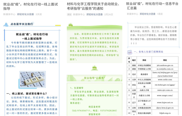 疫情发生以来,材料与化学工程学院严格落实疫情防控措施,分析研判疫情防控期间毕业生就业工作形势,迅速调整工作安排,改进就业服务举措,确保服务不断线、方式有创新、举措有实效,扎实有序推进学院就业指导服务工作,促进毕业生充分就业。