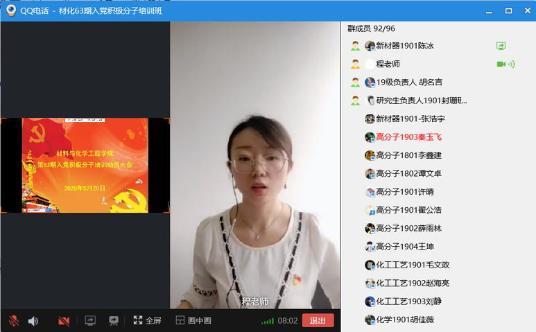 为进一步提高发展党员工作质量,提升发展党员工作规范化、科学化水平,推进全面从严治党落实落细,5月20日下午,材料与化学工程学院召开第63期入党积极分子培训动员大会,全体63期入党积极分子参加了本次动员大会,会议由我院党课负责人程亚芬老师主持。