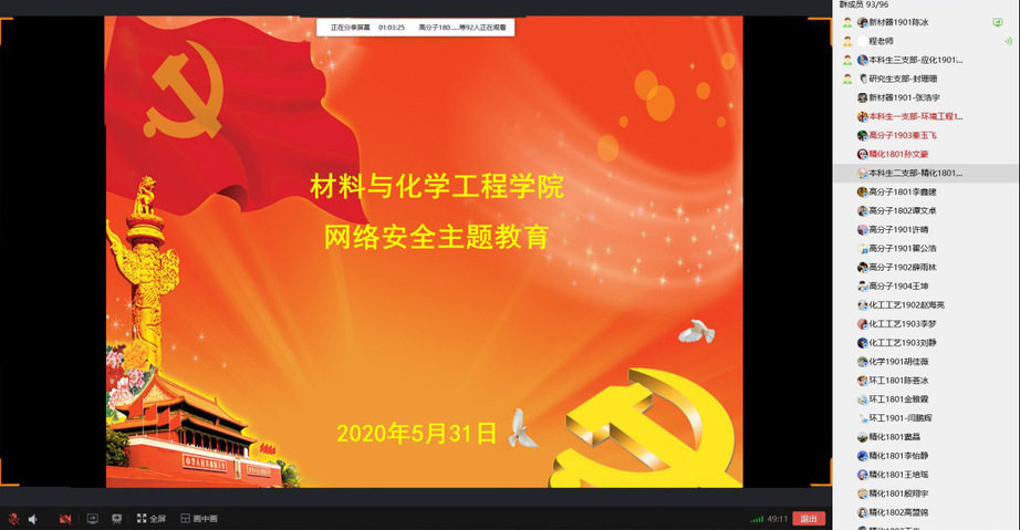 为营造良好的网络环境,提升同学们的安全意识,5月31日,材料与化学工程学院通过线上平台开展网络安全教育活动。