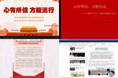 为迎接建党99周年,教育引导广大青年在学思践悟中坚定理想信念,在奋发有为中践行初心使命,7月1日至5日,材料与化学工程学院各基层团支部组织青年团员认真学习“习近平给复旦大学青年师生党员的回信精神”,学习活动采用线上交流的形式。