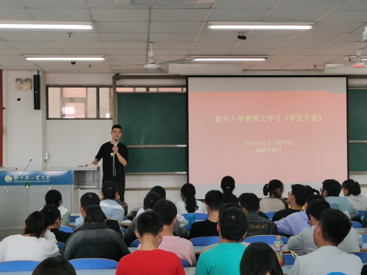 为切实抓好学生的日常教育、管理和服务工作,让新生了解学校的规章制度,尽快地适应大学新环境,2020年10月6-8日,材料与化学工程学院开展新生入学教育《学生手册》集中学习活动,活动由新生辅导员主持,全体新生参加。