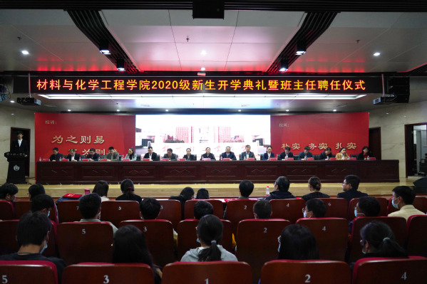 10月9日上午,材料与化学工程学院在科学校区图书馆报告厅隆重举行2020级新生开学典礼暨班主任聘任仪式。学院党政领导、各系(中心)主任、全体辅导员、新生班主任以及2020级全体新生参加了本次典礼。典礼由学院党委副书记司丽娜主持。