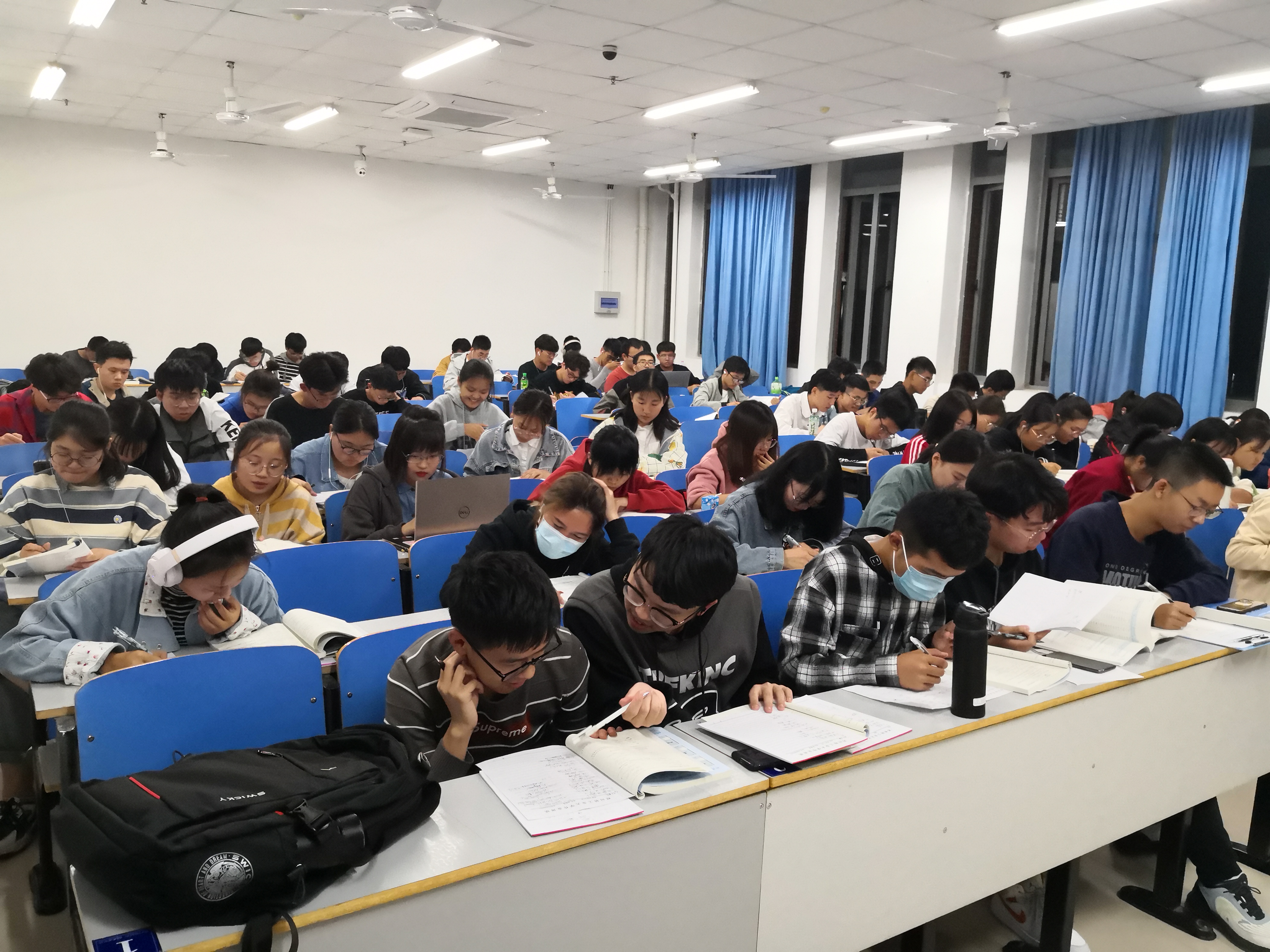 学院2019级和2020级学生在辅导员的带领下,有组织地开始晨跑,同学们个个抖擞精神,没有一人掉队,没有一人放弃,洪亮的口号、坚定的步伐,展现出我院学生的朝气和活力,成为学校体育场的一道靓丽的风景线。早操过后,同学们在本班第一节有课的教室进行晨读,预习课本、背诵单词,大家充分利用晨间,规划新的一天,积极进入学习状态。晚上7:20晚自习,同学们准时到达教室,按照自己的目标规划有针对性地学习,完成作业,查漏补缺,所有自习室学习氛围浓厚。