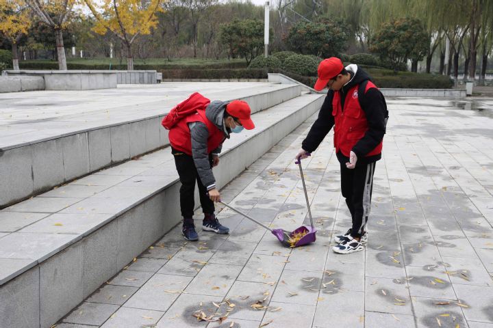 上午九点,志愿者们在科学校区东门集合一起来到须水河公园,他们精神饱满,统一身穿志愿者马甲,手拿塑料袋和铁钳,对公园内遗留的垃圾进行清理,一部分志愿者清理公园地面,另一部分志愿者积极清理花圃中杂物。经过两小时的埋头苦干,志愿者们把散落在公园角落的垃圾清理干净,受到了公园游客的广泛赞扬。与此同时,志愿者们积极宣传环保知识,号召游客树立“绿水青山就是金山银山”的理念,为建设绿水长流、空气常新的美丽郑州出一份力。
