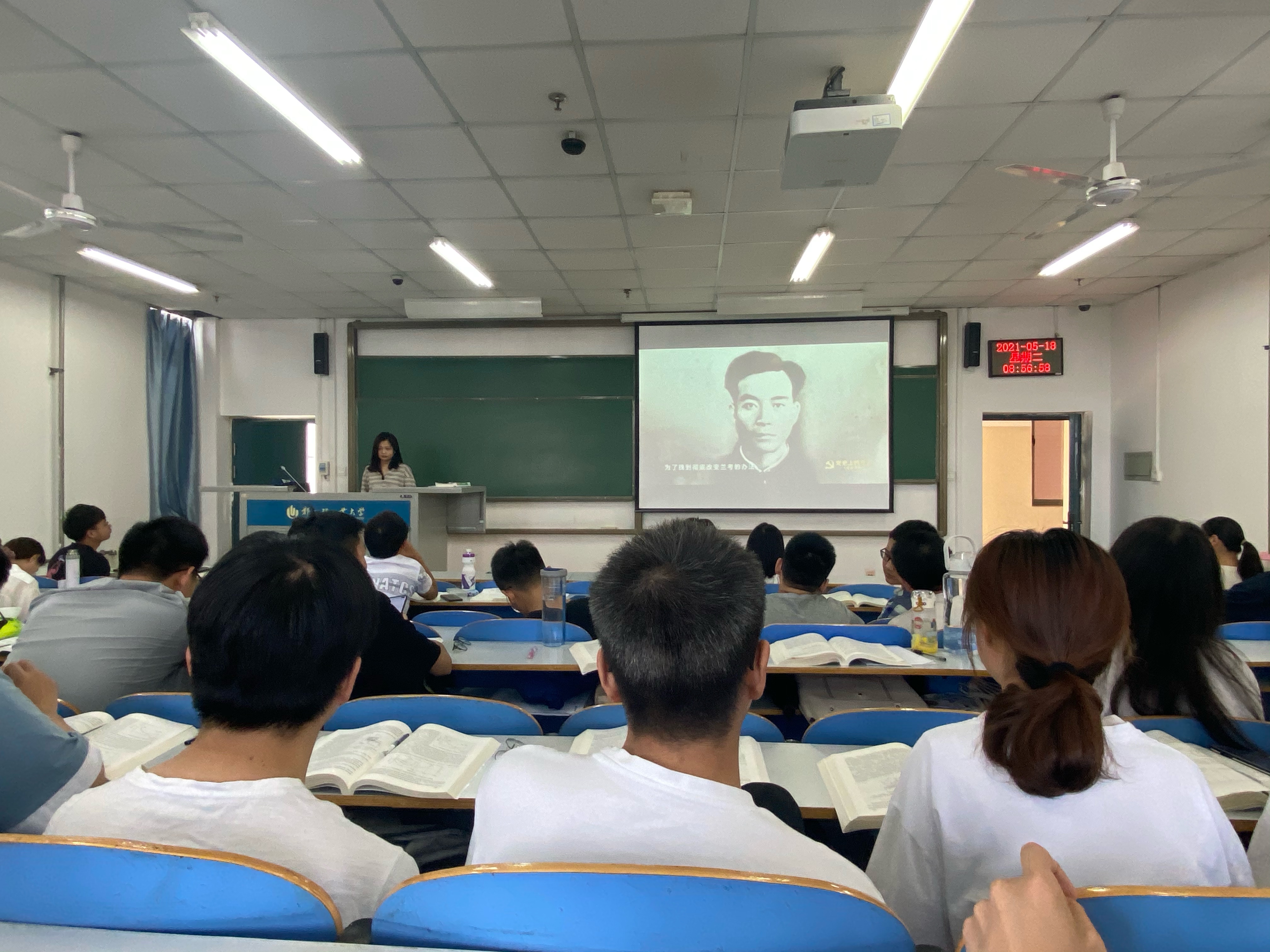 各团支部利用课前碎片化时间进行了《1964年5月14日:焦裕禄病逝》专题片的学习。在专题片中,同学们看到了焦裕禄使用过的藤椅,被藤椅上的大窟窿锁吸引,那是焦裕禄在肝部疼痛时用硬物顶着坚持工作的见证;同学们听到了他的遗愿:活着我没有治好沙丘,死了也要看着兰考人民把沙丘治好。我们仿佛看到了那个沙丘上艰苦奋斗、忍痛和大家一起改造盐碱地的身影;如今遍地泡桐,就是焦裕禄的精神力量在兰考最鲜活的承袭。焦裕禄的崇高精神跨越时空、历久弥新,无论过去、现在还是将来,都永远是亿万人心中一座永不磨灭的丰碑,永远是鼓舞我们艰苦奋斗、执政为民的强大思想动力,永远是激励我们求真务实、开拓进取的宝贵精神财富,永远不会过时。