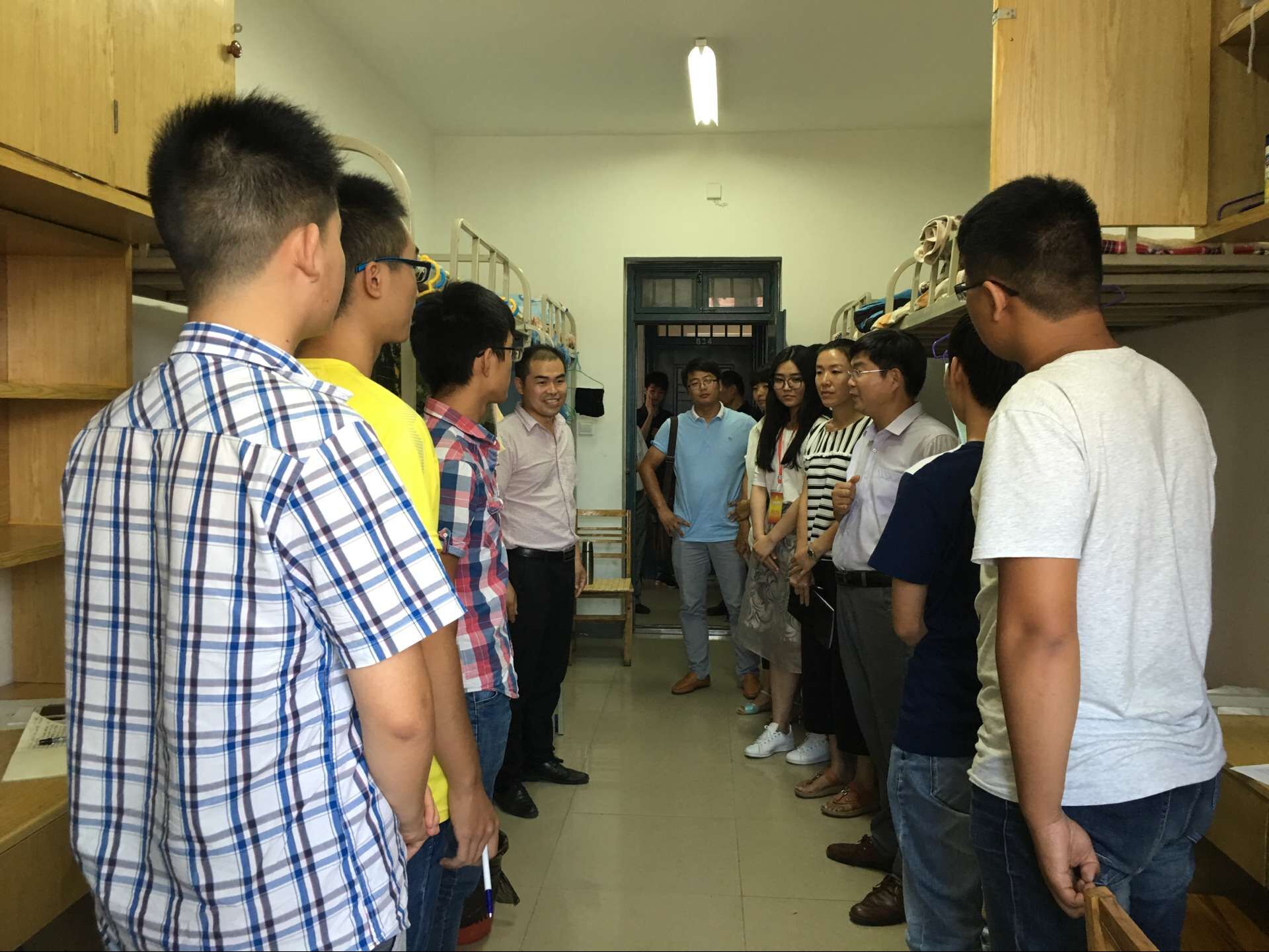 9月7日下午四点,材料与化学工程学院党政领导及党政办公室、分团委、学工办、新生辅导员老师、新生班主任老师走进学生宿舍看望2016级新生,了解新生的思想状况。