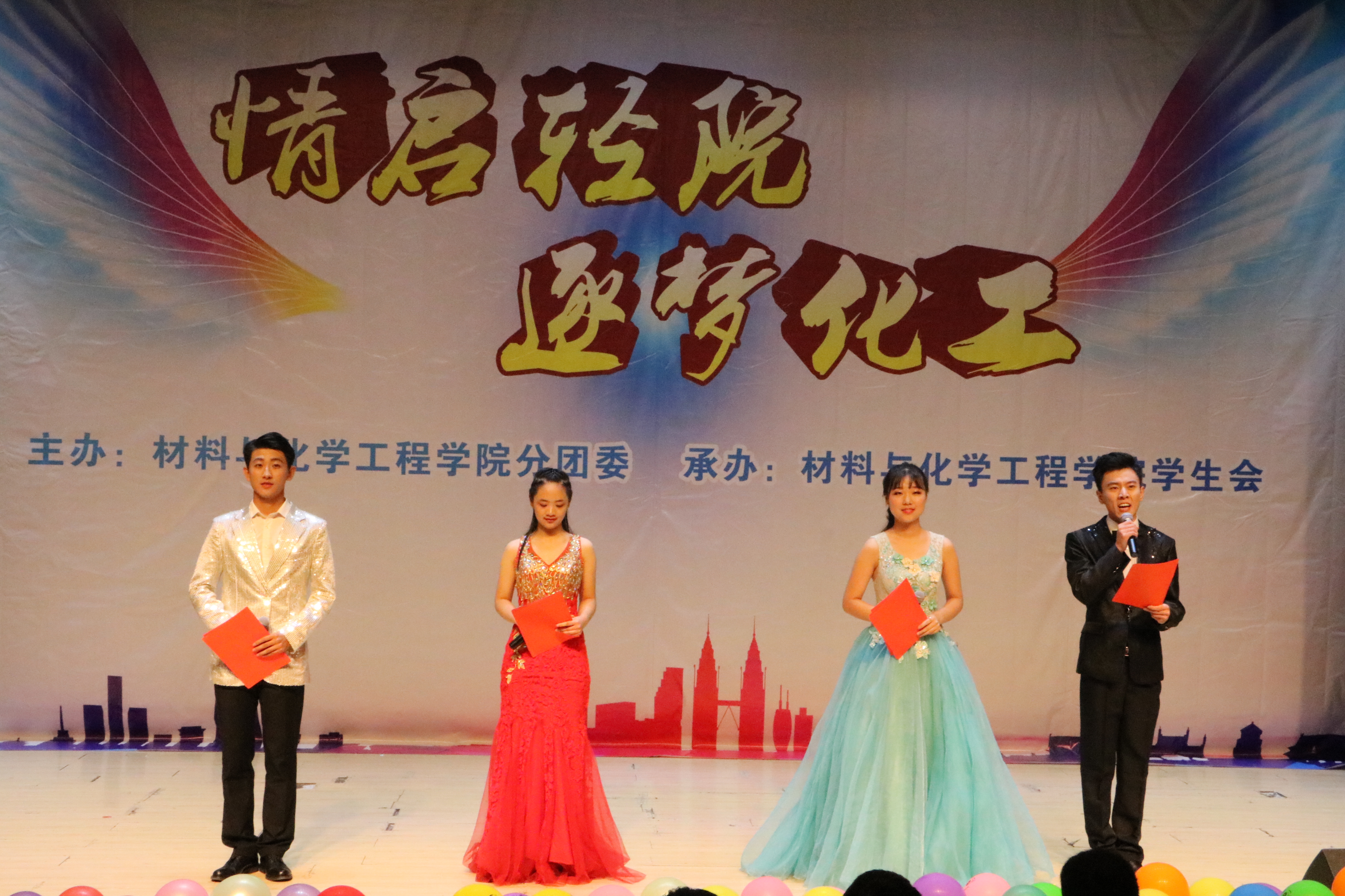 为迎接2016级新生加入化工学院大家庭,展现材化学子精神风貌,凝心聚力,激发活力,9月28日晚七点,由材料与化学工程学院分团委主办、学生会承办,以“情启轻院,逐梦化工”为主题的迎新晚会于三教208举行。材料与化学工程学院党总支书记康国磊副教授、党总支副书记宋德涛老师、副院长张宏忠教授、分团委书记朱广正老师、全体新生班主任老师及2016级全体新生参加了本次晚会。