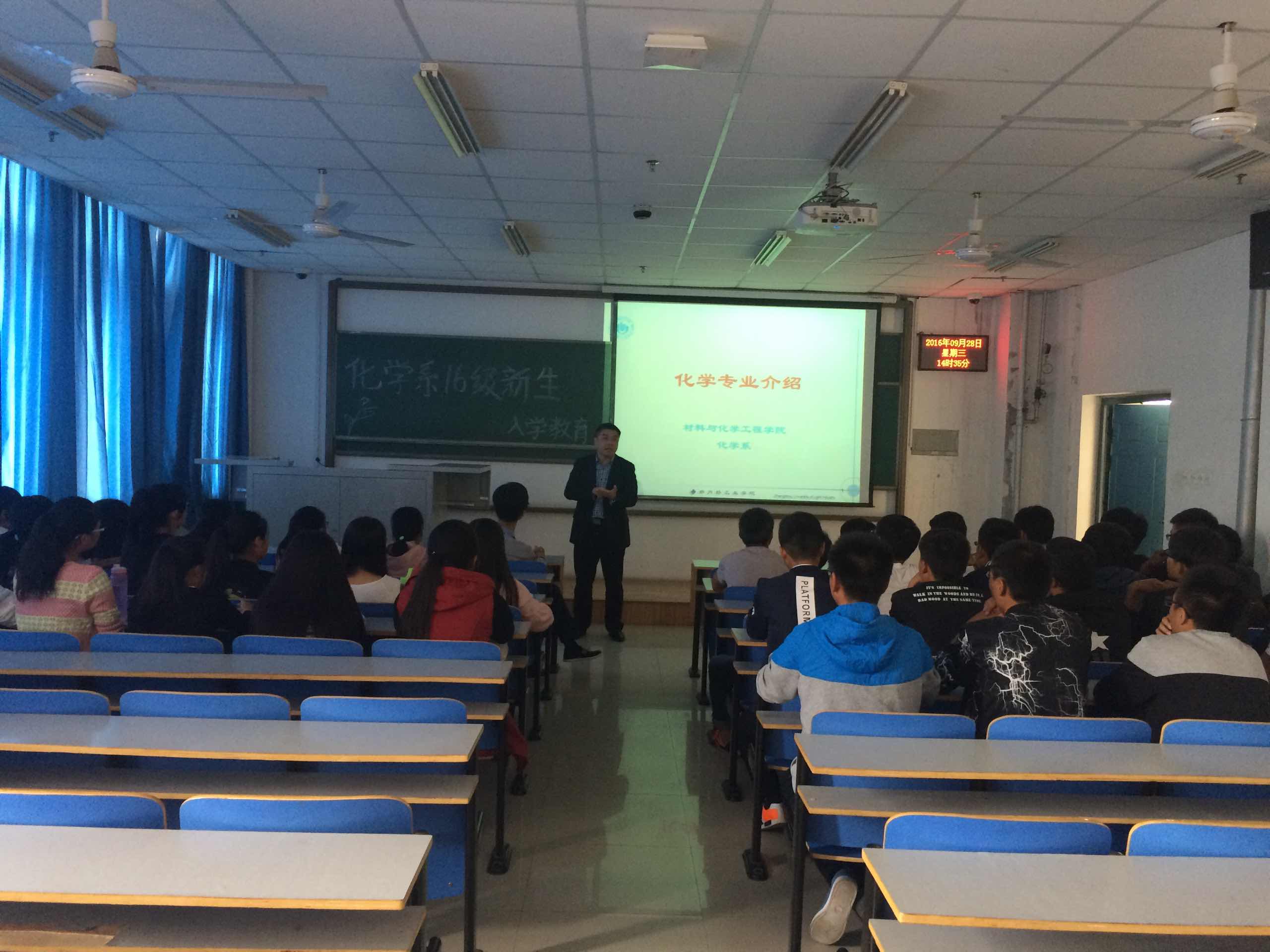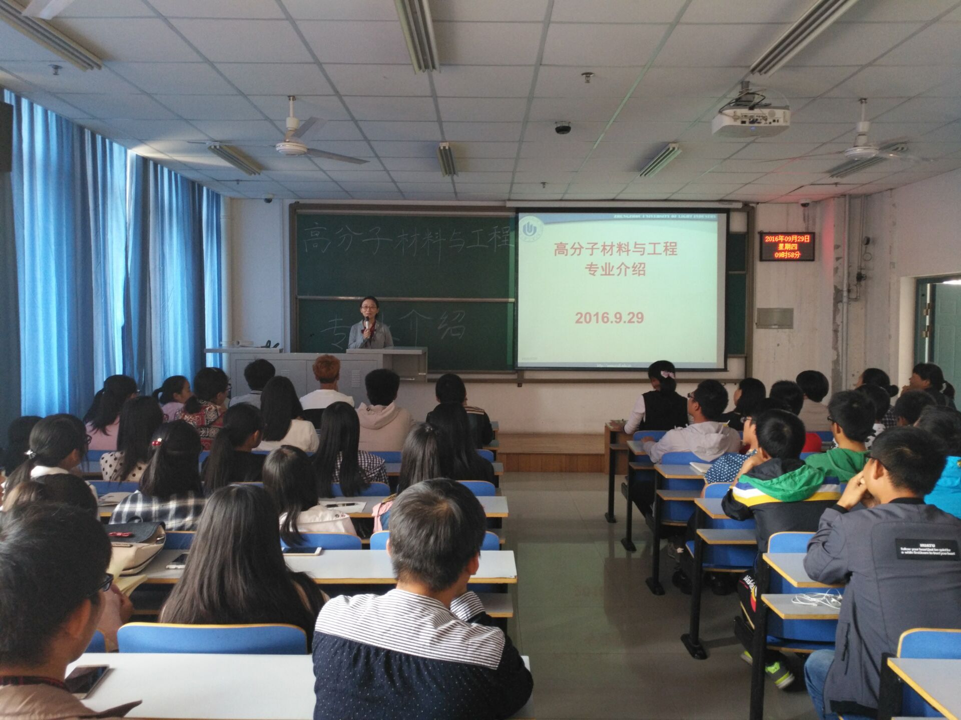 为了使材料与化学工程学院2016级新生对学院情况和所学专业有一个全面的了解,帮助他们更好更快的适应大学生活,进而明确学习目标,科学合理的规划大学四年的学习,9月29日至30日,材化学院各专业系部分别在二教楼808、804、916、化工楼218、222教室开展了专业介绍活动,全体新生、系部老师参加了此次活动。