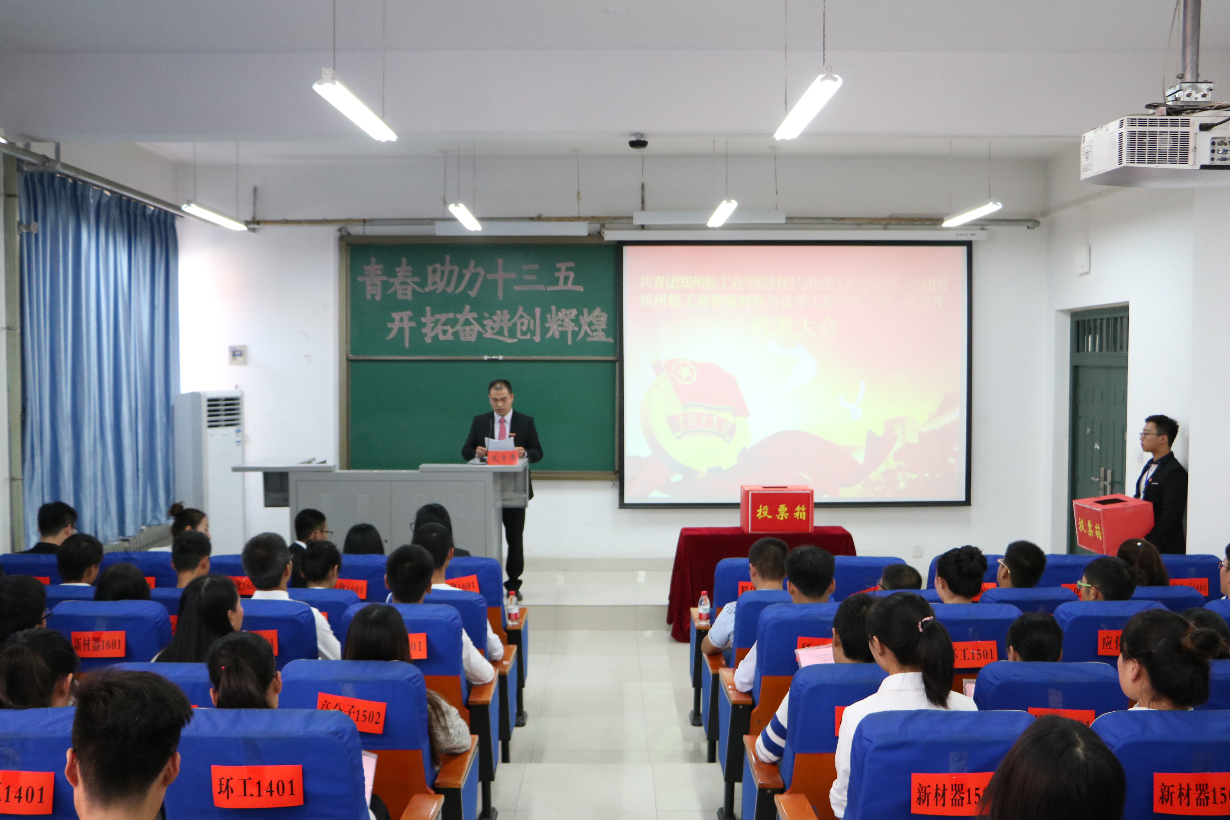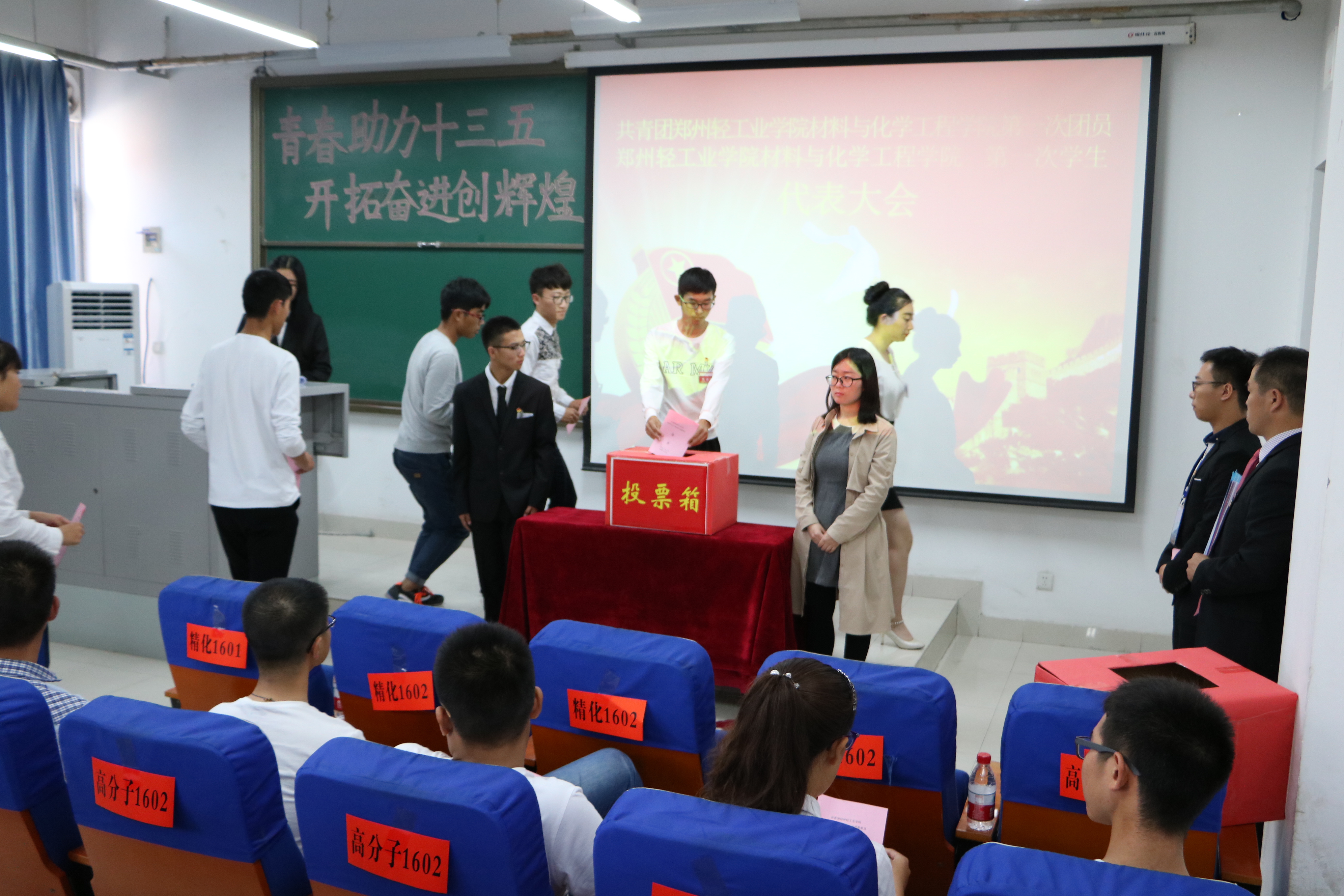 2016年10月19日中午12点,共青团郑州轻工业学院材料与化学工程学院第一次团员代表大会暨郑州轻工业学院材料与化学工程学院第一次学生代表大会于化工楼218隆重召开。学院党总支书记康国磊老师、校团委书记葛勋老师、副书记景志勇老师、学院党总支副书记宋德涛老师、分团委书记朱广正老师和全体团员代表、学生代表参加此次大会。会议由王光霁老师主持。